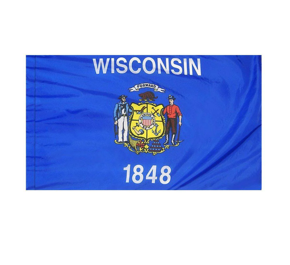 Our 3’x5′ State of Wisconsin banner flags are constructed with a 3″ pole hem, or sleeve, and digitally printed on 200 denier nylon fabric for outdoor or indoor use. The pole sleeve slides over a 1″ to 1-1/4″ flagpole and has a leather tab sewn inside to easily secure to the pole.